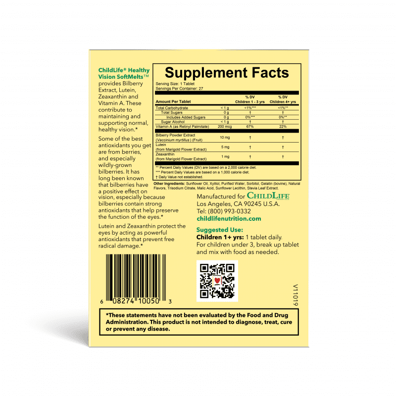 - Better than traditional gummy supplements which tend to be packed with sugar, our ChildLife® Healthy Vision SoftMelt Gummies™ has natural sugar-free sweetening agents such as Stevia and Xylitol.