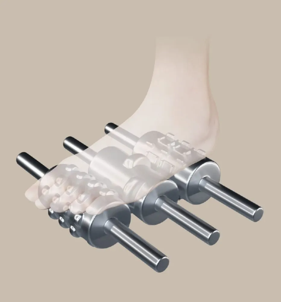 感受足底反射按摩的威力。三組滾輪能刺激腳底特定神經點,幫助舒緩疼痛、減少發炎,並讓你恢復活力。