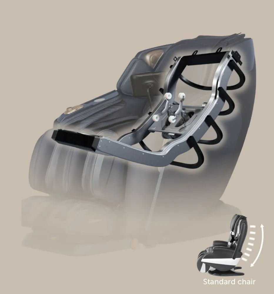 Experience the benefits of an extra-long L-shaped and S-shaped massage track that perfectly follows the contours of your spine. This track extends from the top of your shoulders to the glutes, providing a length that is twice that of a standard massage chair.